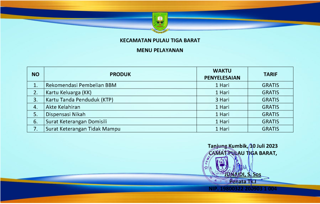 Silahkan Klik Link diatas untuk Mengisi Buku Tamu pada Layanan PATEN Kantor Kecamatan Pulau Tiga Barat
